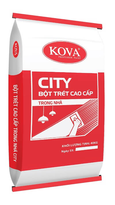 BỘT TRÉT NỘI THẤT CAO CẤP KOVA CITY là loại bột trét thông dụng để làm phẳng tường trong nhà trước khi sơn phủ, đã được nhiệt đới hóa hoàn toàn, phù hợp với tất cả các loại công trình.